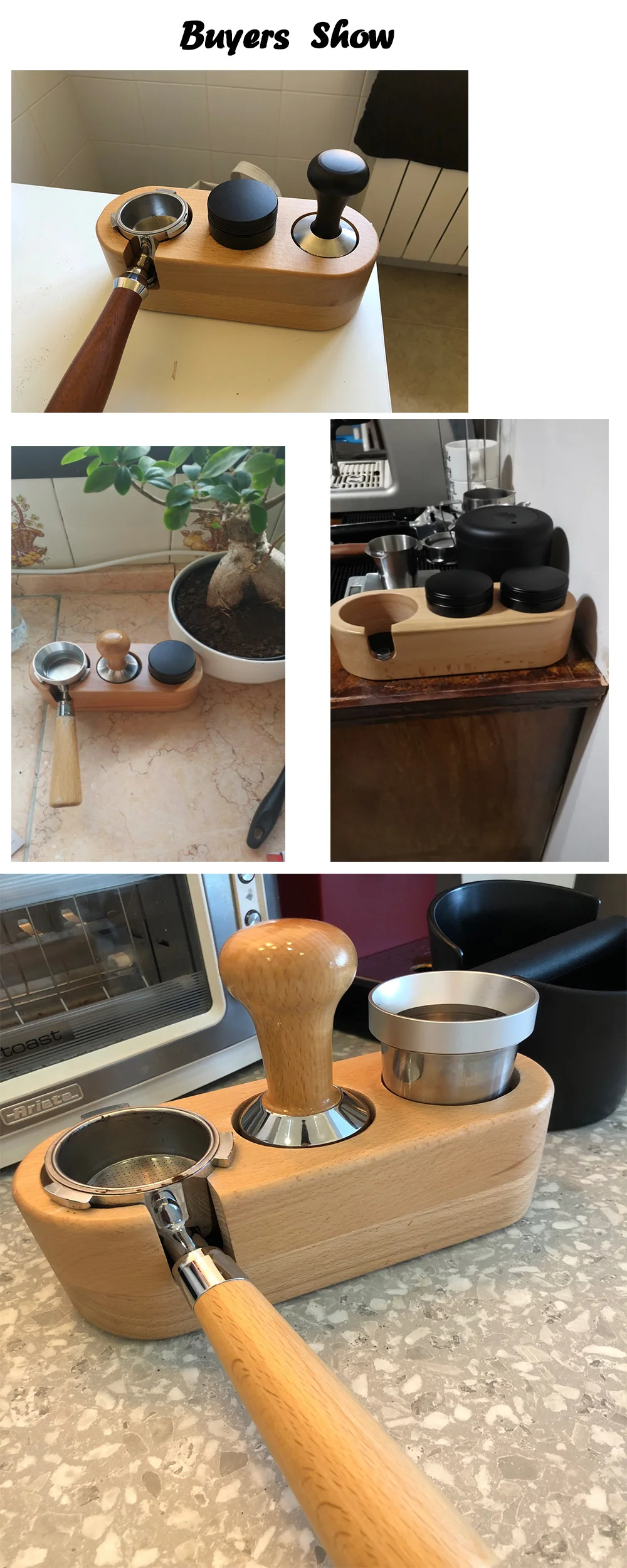 - word3: Manual Wood Coffee Tamper Holder